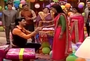 Just then chandelier starts coming down towards Sanchi, Aryan suddely sees it and rushes to save Sanchi.