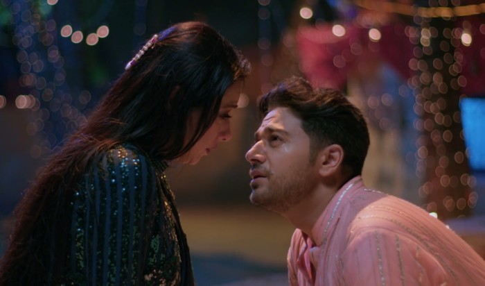 Anuj stops the car in front of Anupama as he flashes the light to her eyes.